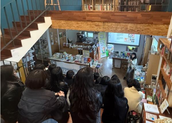 사슴책방에서는 그림책 작가가 ‘그림책 읽는 방법’을 주제로 학생들이 그림책을 더 흥미롭게 읽을 수 있는 방법을 소개했다.