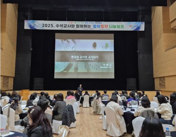 경상남도교육청은 28~29일 사천 인재니움연수원에서 교원의 심리적 회복과 수업 전문성 강화를 위한 ‘2025년 수석교사와 함께하는 토닥토닥 나눔캠프’를 운영한다.
