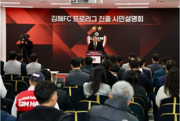 28일 김해종합운동장에서 열린 설명회에는 재단법인 김해FC 이사장인 홍태용 김해시장과 축구협회 임원진과 관계자를 비롯해 김해시 체육회와 유관단체, 시민과 축구팬 200여명이 참석해 설명회장을 가득 메웠다.