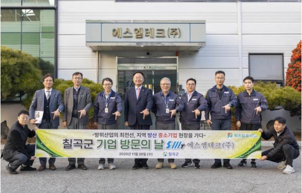 칠곡군은 11월 26일, 올해 마지막 ‘기업방문의 날’을 맞아 글로벌 수출 호황으로 빠르게 성장하고 있는 지역 내 방산 중소기업 ▲(주)엠케이디에스 ▲(주)환화 ▲(주)에스엠테크를 방문했다.
