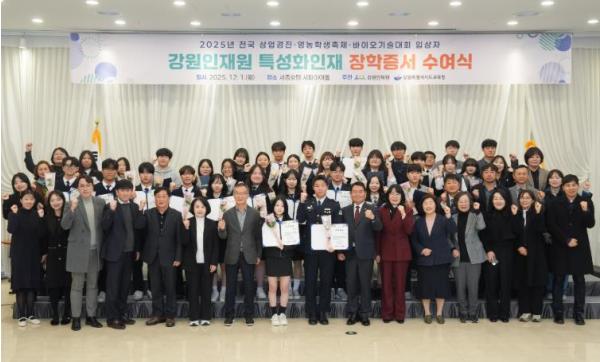 강원특별자치도교육청은 12월 1일, 춘천 세종호텔에서 전국대회에서 우수한 성적을 거둔 도내 특성화고 학생들을 격려하기 위한 장학증서 수여식을 개최했다.