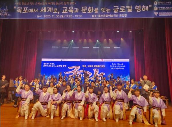 경상북도경주교육지원청은 2025년 11월 30일 오후 5시, 목포문화예술회관에서 개최되는 ‘목포청소년국악오케스트라 발표회 및 K-국악도시 목포 비전 선포식’에 경주 의곡초등학교 사물놀이단 ‘쇼미더장구’를 특별공연팀으로 내세워 함께 참여했다.