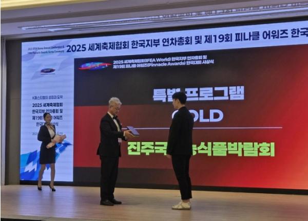 진주시는 1일 충남 부여군에서 열린 ‘2025 아시아 피너클 어워드’에서 ‘2025 진주국제농식품박람회’가 특별 프로그램 부문에서 금상을 수상했다고 밝혔다.