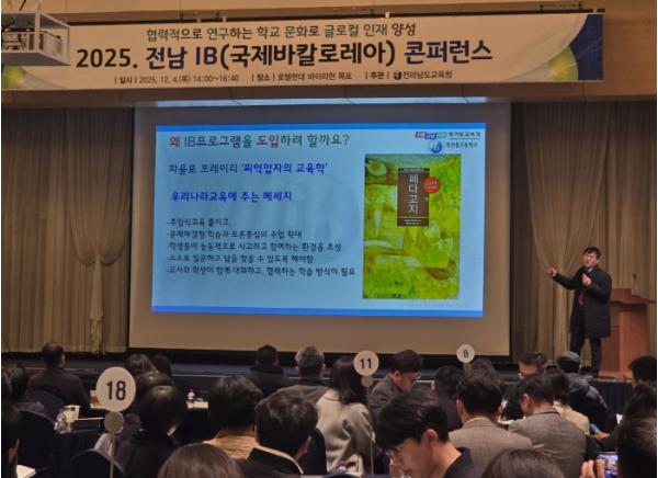이러한 정책 방향 공유를 위해 전남교육청은 4일 영암에서 ‘2025 전남 IB 콘퍼런스’를 개최했다. 행사에는 IB 운영학교, 연구회, 일반학교 교원 등 250여 명이 참석해 IB 프로그램 운영 방향과 2026년 공모 계획을 함께 논의했다.