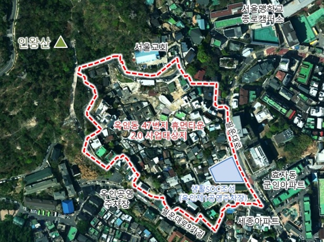옥인동 47번지 일대(30,282.5㎡)는 2019년 7월 주거환경개선구역으로 지정됐다. 역사문화자원이 풍부하지만, 불법주정차 · 소방차 진입 불가 · 체육시설 부족 등 생활기반시설이 낙후돼 있었다.