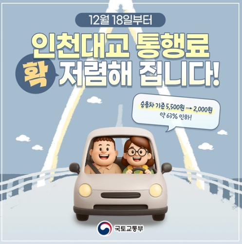 12월 18일부터 인천대교 통행료 확 저렴해 집니다!