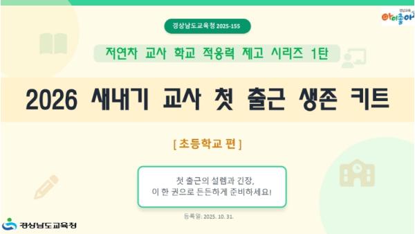 경상남도교육청은 22일부터 도내 초등학교 신규 교사의 안정적인 학교 정착을 지원하기 위한 『2026 새내기 교사 첫 출근 생존 키트』를 도내 전 초등학교에 배포한다.