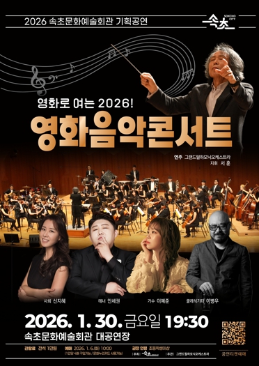 속초시가 2026년 새해를 맞아 1월 30일 오후 7시 30분, 속초문화예술회관 대공연장에서 ‘영화로 여는 2026! 영화음악콘서트’를 개최한다.
