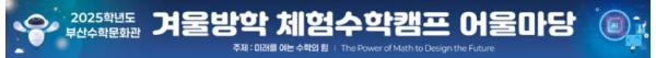 부산광역시교육청창의융합교육원은 오는 13일부터 16일까지 부산수학문화관에서 초·중·고 학생 340명을 대상으로 ‘겨울방학 체험수학 캠프’를 개최한다.