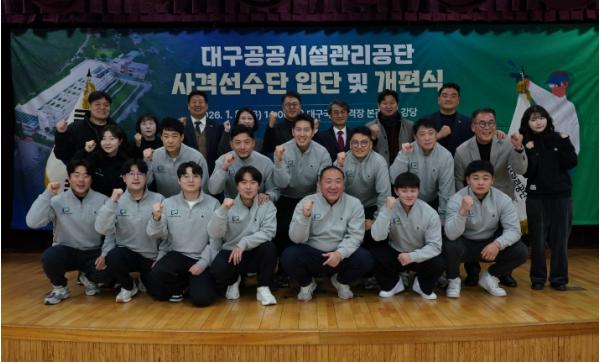 대구공공시설관리공단은 1월 8일 오후 2시, 대구시, 사격연맹, 공단 관계자 등 내·외 귀빈과 사격선수단 등 30여 명이 참석한 가운데 대구국제사격장에서 사격선수단 신규입단 및 개편식을 개최했다.