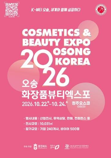 충북도와 청주시는 1월 14일부터 화장품·뷰티산업의 트렌드를 선도하고, 국내 화장품 기업의 판로 개척을 지원하는 ‘2026 오송화장품뷰티엑스포’의 참가기업 및 공식후원사 모집을 시작한다.