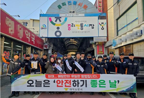 대전소방본부(본부장 김문용)는 14일 겨울철 전통시장 화재를 예방하고 안전한 시장 환경을 조성하기 위해, 관내 5개 소방서와 함께 전통시장 화재예방 캠페인을 실시하는 등 안전관리 강화에 나섰다.