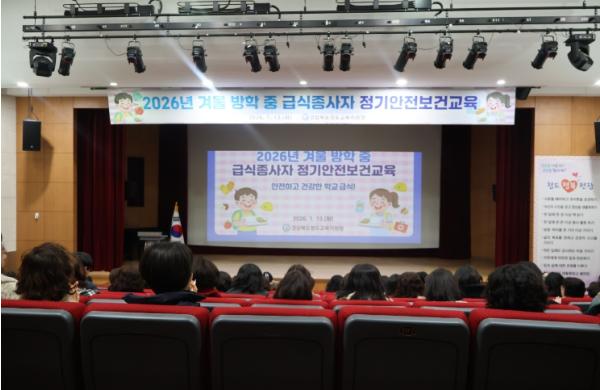 경상북도청도교육지원청은 1. 13. 청도군 청소년수련관 다목적홀에서 청도·영천 지역 학교 급식종사자 130여 명을 대상으로 방학 중 정기안전보건교육을 실시했다.