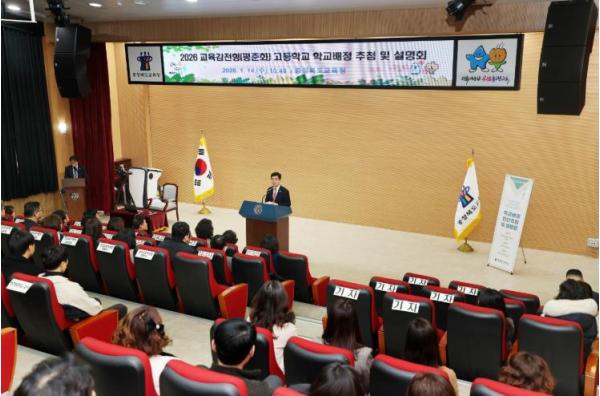 충청북도교육청은 14. 오전 10시 40분, 도교육청 사랑관 세미나실에서 청주시, 충주시, 음성군 맹동면‧진천군 덕산읍 소재 평준화고 전체 6,765명(정원외 38명 포함. 충주예성여고 음악중점과정 19명 별도)에 대한 배정 전산추첨과 설명회를 개최했다.