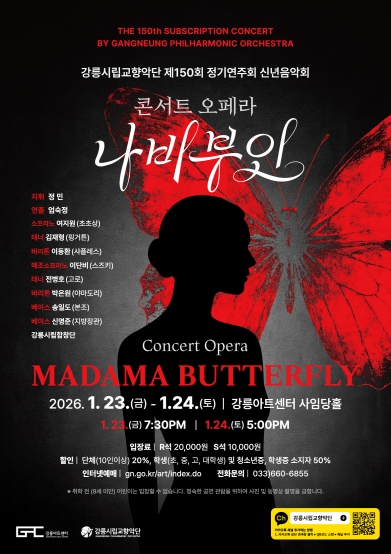 강릉시립교향악단은 2026년의 첫 정기연주회로 오는 23일(금) 19시 30분, 24일(토) 17시 강릉아트센터 사임당홀에서 콘서트 오페라‘나비부인’을 선보인다.