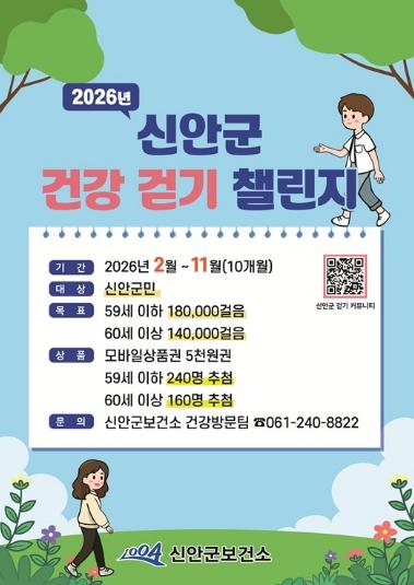 신안군은 군민의 걷기 실천 문화 확산과 건강증진을 위해 2026년 건강 걷기 챌린지 ‘워크온’을 본격 운영한다고 밝혔다.