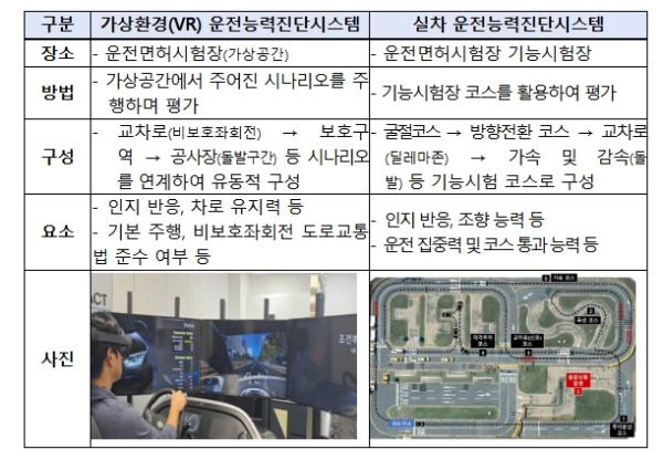 경찰청과 한국도로교통공단(이사장 김희중)은 2월 11일부터 실차 및 가상환경 기반 운전능력진단시스템 시범운영을 실시한다.