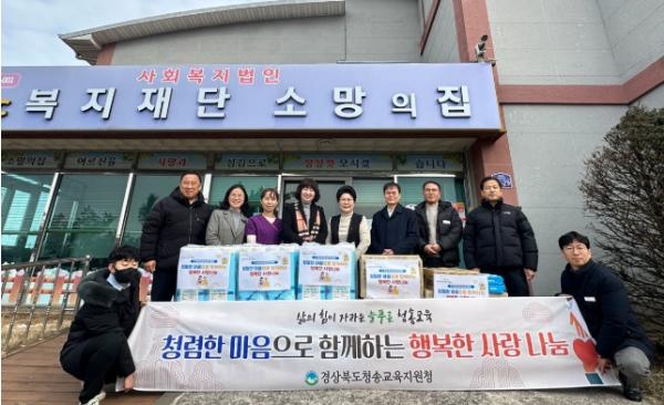 경상북도청송교육지원청은 설 명절을 앞두고 10일 청송군에 있는 노인복지시설 2곳(소망의집, 청송국민노인종합센터)을 방문하여 생필품 등 위문품을 전달했다.