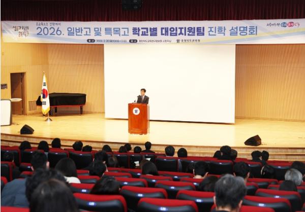 충청북도교육청은 20일, 교육연구정보원 시청각실에서 '2026. 일반고 및 특목고 학교별 대입지원팀 진학 설명회'를 실시했다고 밝혔다.