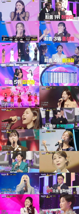 TOP10의 모든 무대가 끝나고 트롯퀸들의 순위가 공개돼 긴장감을 높였다. 먼저, 마스터 점수 1위 허찬미(1,585점), 2위 길려원(1,576점), 3위 윤윤서(1,561점), 4위 이소나(1,558점), 5위 윤태화(1,547점), 6위 홍성윤(1,544점), 7위 염유리(1,542점), 8위 김산하(1,515점), 9위 유미(1,503점), 10위 이엘리야(1,468점). 여기에 온라인 투표 점수, 국민대표단 점수를 합산한 중간 순위는 1위 길려원(1,907점), 2위 허찬미(1,906점), 3위 홍성윤(1,896점), 4위 이소나(1,891점), 5위 윤태화(1,872점), 6위 윤윤서(1,866점), 7위 염유리(1,816점), 8위 김산하(1,766점), 9위 이엘리야(1,739점), 10위 유미(1,726점)다. 단 몇 점차 초박빙의 승부가 이어진 것.