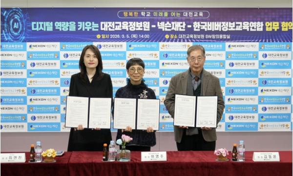대전교육정보원은 3월 5일, 넥슨재단 및 한국비버정보교육연합과 함께 학교 현장의 실질적인 정보교육 강화를 위한 3자 업무협약을 체결했다.
