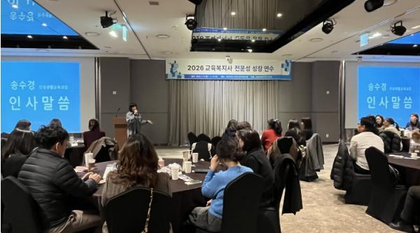 이번 연수는 2026년도 행복나눔 교육복지사업의 기본 방향을 공유하고, 현장 담당자들의 전문성을 향상하기 위해 마련됐다. 아울러, 현장 실무자들의 업무 스트레스 해소와 자기돌봄을 지원하는 데에도 중점을 두었다.