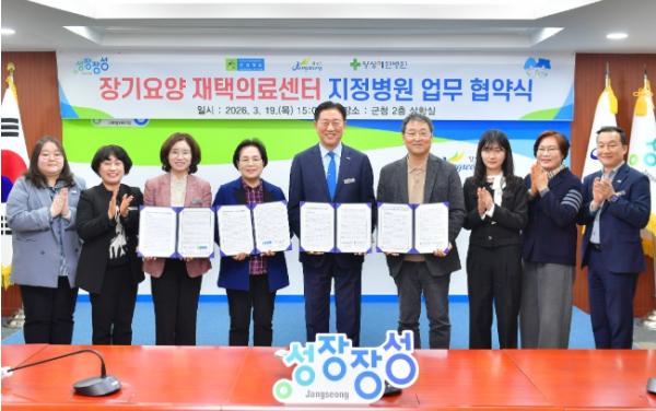 장성군이 지난 19일 군청 상황실에서 장성병원, 장성혜원병원 관계자 등 10여 명이 참석한 가운데 ‘장기요양 재택의료센터’ 운영 업무협약을 체결했다.