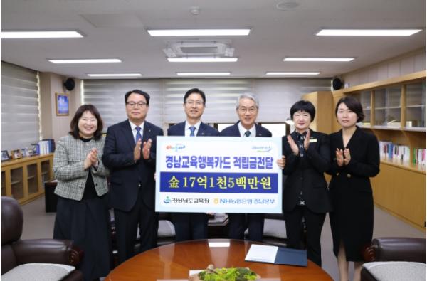경상남도교육청은 24일 NH농협은행으로부터 ‘경남교육행복카드’ 사용으로 적립된 포인트 17억 1,585만 6,930원을 전달받았다.