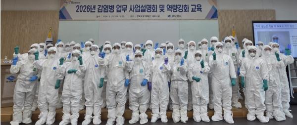 교육에서는 감염병 발생 시 보고체계와 대응 방법, 개인보호구(Level D) 착·탈의 실습 등 현장 중심의 실무 교육이 중점적으로 진행됐다.