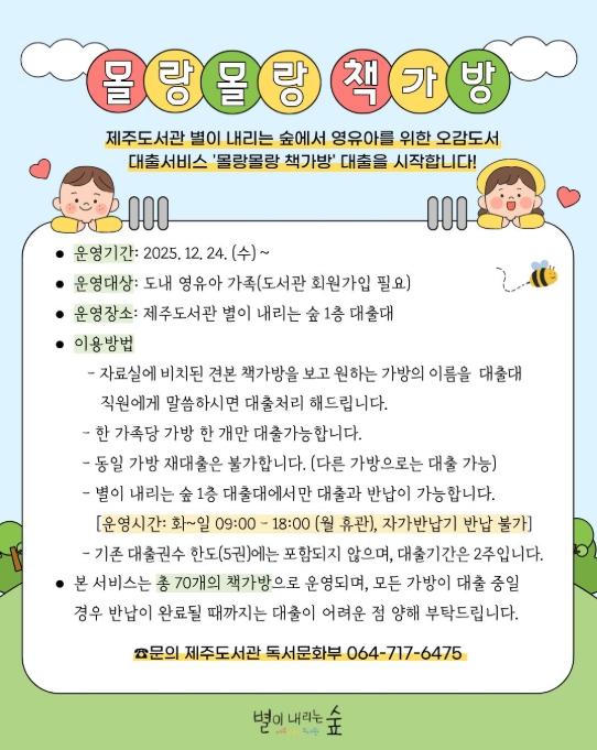 제주도교육청 제주도서관이 운영 중인 영유아 오감 도서 대출서비스 ‘몰랑몰랑 책가방’이 이용자들의 꾸준한 호응을 얻고 있다.