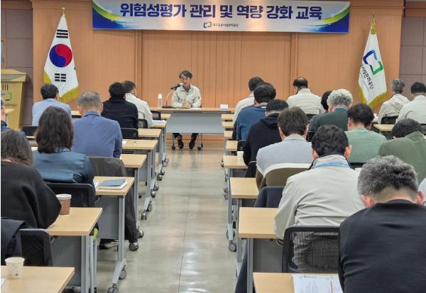대구공공시설관리공단은 3월 26일 산업재해 예방과 안전문화 정착을 위해 대명동 공단 본사에서 CEO 주관 ‘위험성평가 관리 및 역량강화 교육’을 실시했다.