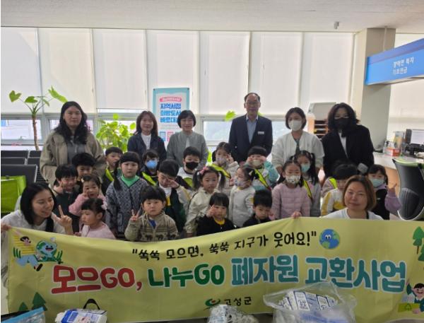 고성군은 3월 27일 고성읍 행정복지센터에서 관내 어린이집원아들과 함께 폐자원 교환 캠페인 “모으GO, 나누GO”를 진행하며 자원 순환 문화 확산에 나섰다.