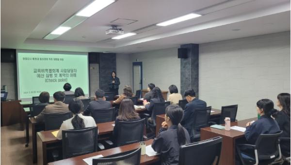 동부교육지원청 관계자는 “회계 집행 과정에 상시 점검과 컨설팅 체계를 마련해 발생할 수 있는 오류를 사전에 예방하고, 담당자의 전문성을 높여 예산 집행의 투명성과 책임성을 더욱 강화할 것으로 기대한다”고 말했다.