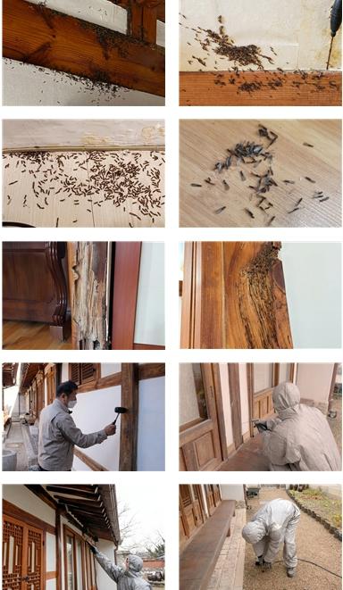 흰개미는 땅속에 서식하다 봄철 집단 이동하는 특성이 있어, 기둥 틈새 등에서 대량 출몰해 거주민의 불안을 유발한다. 특히 목구조 중심의 한옥은 피해 발생 시 구조 안정성 저하로 이어질 수 있어 사전 대응이 중요하다.